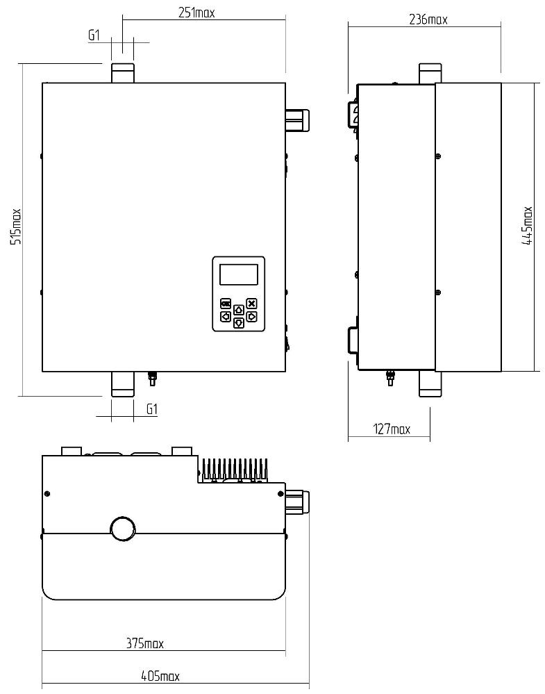Управление электрическим котлом РЭКО 12-П осуществляется при помощи функциональной панели с ЖК-дисплеем, имеющей все необходимые индикации (информация о текущих температурах, режимах работы и неисправностях).