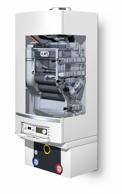 Навесной конденсационный котёл удовлетворяет потребности в отоплении и горячей воде объектов площадью до 850 кв. м. Оребренный алюминиевый теплообменник рассчитан на длительную безаварийную эксплуатацию и, благодаря оптимальным условиям конденсации, эффективно производит тепло в любое время года.