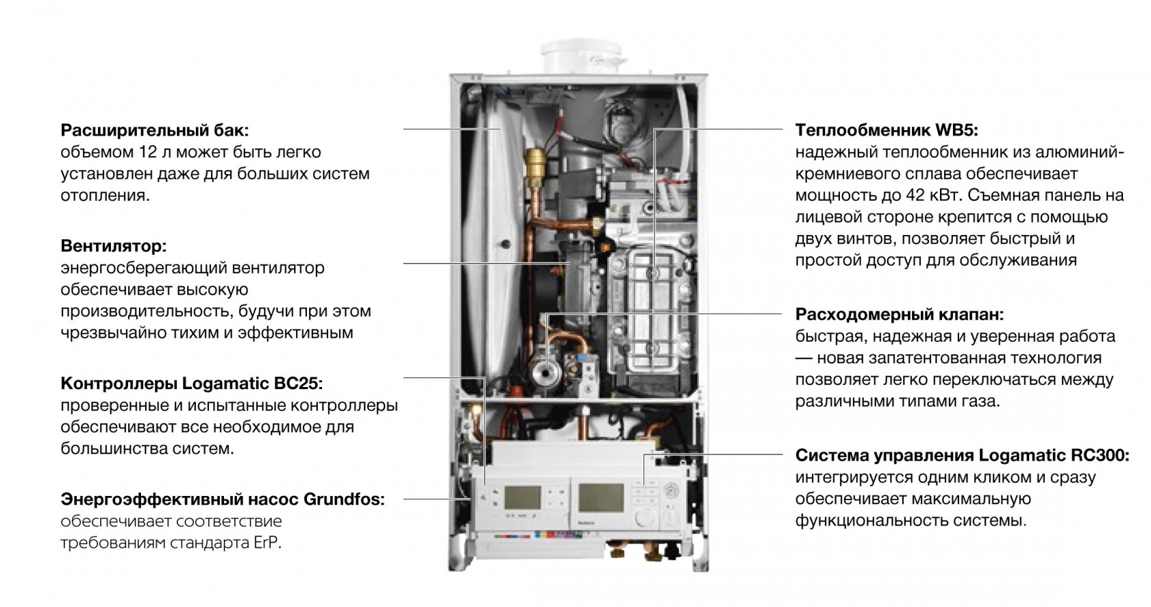 Теплообменник WB5 из алюминиевого сплава ALU plus отличается надёжностью, долговечностью и уникальной эффективностью. Кроме того, его очень легко чистить и обслуживать: уникальная конструкция аппарата обеспечивает быстрое и без затруднений проведение сервисных работ.