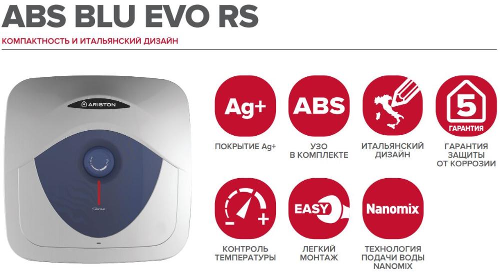 Ariston ABS BLU EVO RS 15U - Купить электрический водонагреватель в Москве | Отзывы