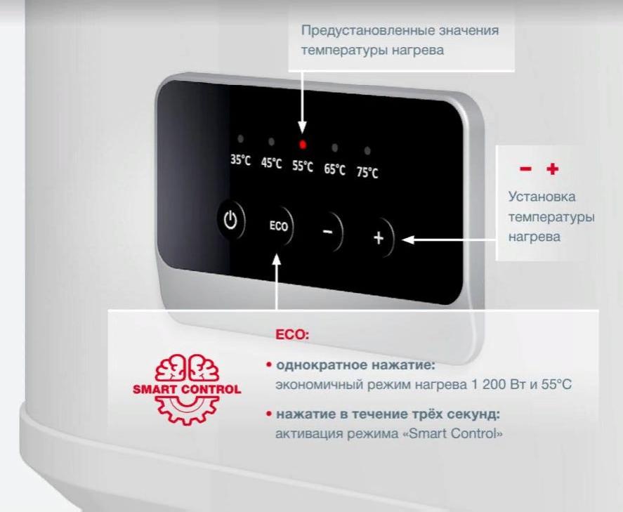 Thermex Bravo 50 Wi-Fi имеет удобное управление. Яркая сенсорная панель интуитивно понятна и позволяет легко выбрать режим нагрева и температуру. Функция умного нагрева Smart Contol: в течение недели запоминает привычки использования горячей воды по дням недели и автоматически их поддерживает.