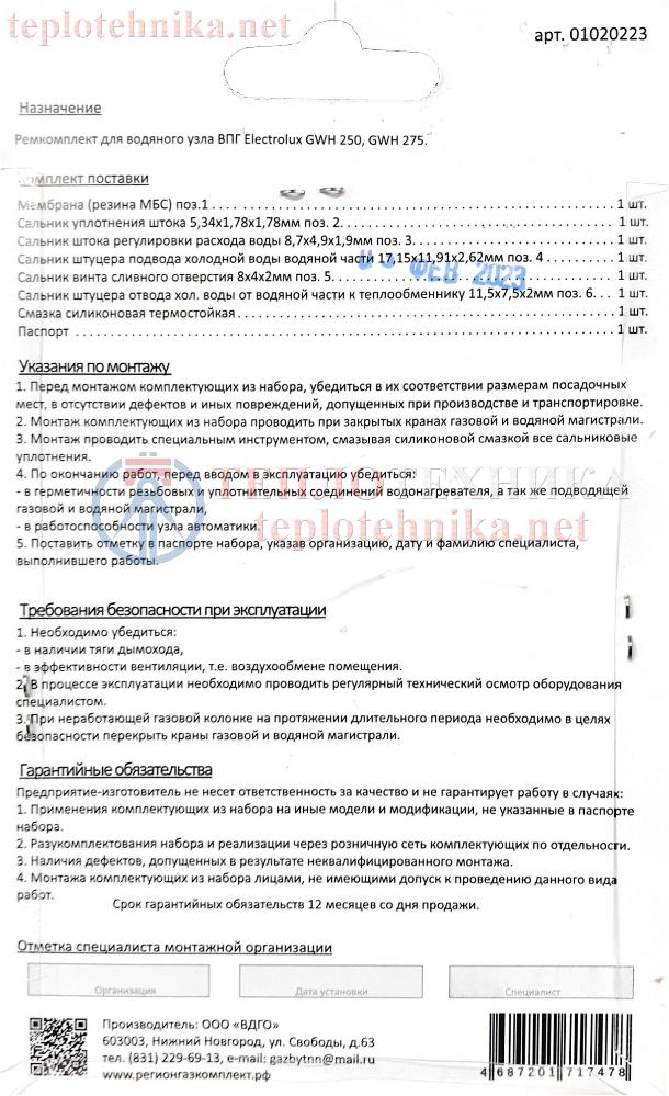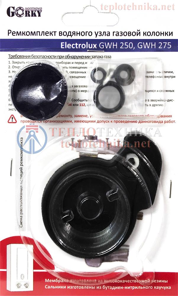 Ремкомплект для водяного узла проточного газового водонагревателя Electrolux GWH 250 и Electrolux GWH 275.