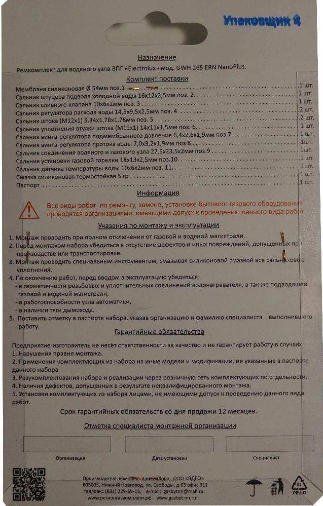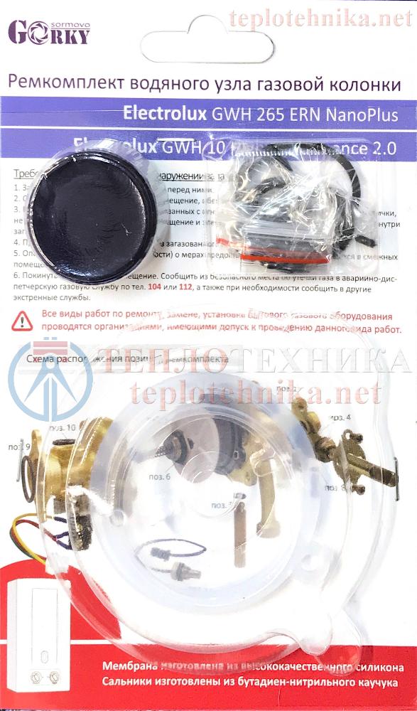Ремкомплект для водяного узла проточного газового водонагревателя Electrolux GWH 265 ERN NanoPlus и Electrolux GWH 10 High Performance 2.0.