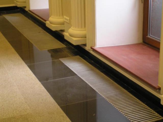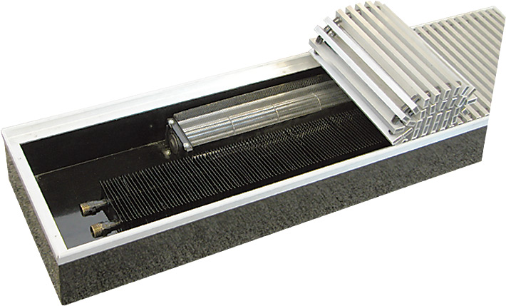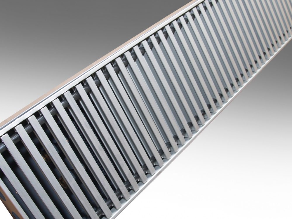 Конвекторы «БРИЗ» c медно-алюминиевым теплообменником, обеспечивают быстрый и эффективный обогрев помещения, создавая перед большими окнами и стеклянными стенами тепловые завесы от потоков холодного воздуха. В летний период конвектор может использоваться для «легкого» кондиционирования помещения. Конвекторы «Бриз» встраиваются в структуру пола, остаются видимыми только декоративные решетки. Теплообменник комплектуется краном Маевского (воздухоотводчиком). В стоимость прибора входит декоративная решетка «Алюминий с бесцветным анодированием» с шагом «18» мм