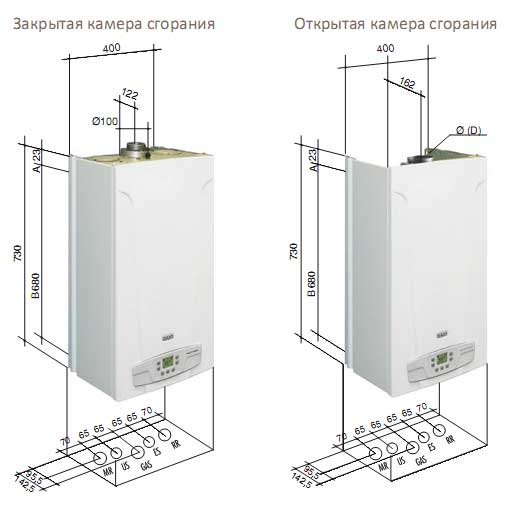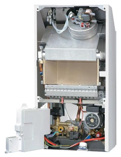 открытую камеру сгорания с непрерывной электронной модуляцией пламени в режимах отопления и ГВС;