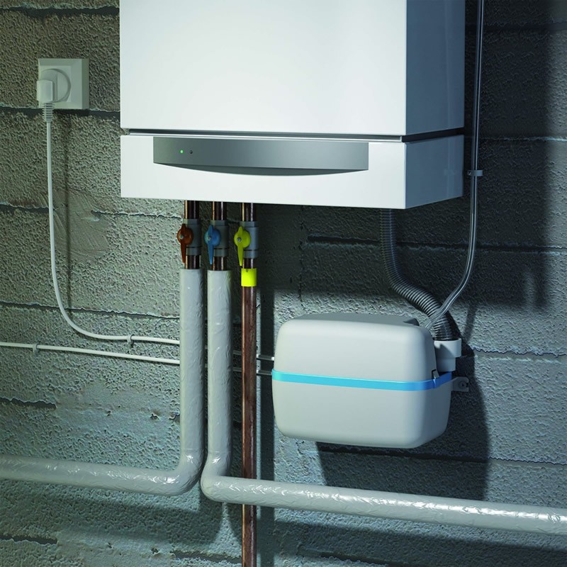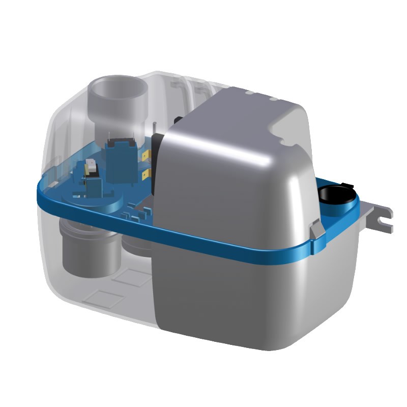 Насос совместим с любыми моделями бытовой техники. Он обладает достаточной мощностью (производительность 156 л/ч), чтобы транспортировать стоки на расстояние до 4,5 метров по вертикали и до 50 метров по горизонтали. При этом работает установка достаточно тихо. Sanicondens Plus — компактный прибор, который может быть размещен как на стене, так и на полу. Датчик встроенной сигнализации отключит насос в том случае, если возникнут какие-либо проблемы. Надежное устройство, которое позволяет максимально эффективно использовать сразу несколько объектов бытовой техники.