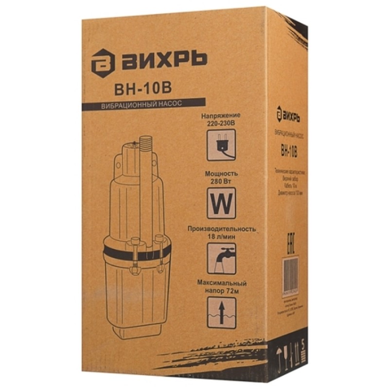 Вибрационный насос ВИХРЬ ВН-10В с верхним забором применяется для перекачивания чистой воды из резервуаров и колодцев диаметром более 110 мм.
