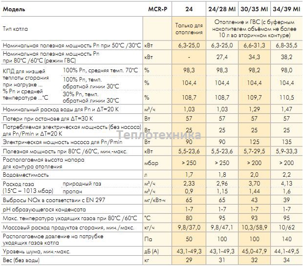 Компактные настенные конденсационные котлы только для отопления (MCR-P 24) и для отопления и горячего водоснабжения при помощи встроенного пластинчатого теплообменника (MCR-P .. MI)
