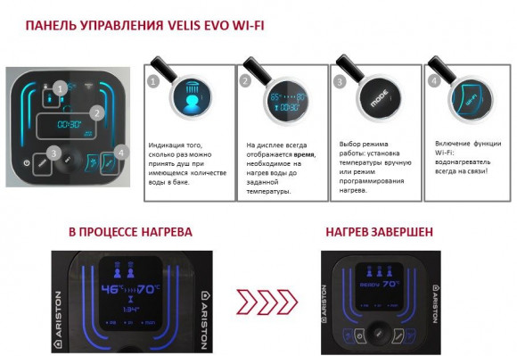 Управляйте ABS Velis Evo Wi-Fi со смартфона из любой точки мира, и вне зависимости от обстоятельств дома всегда будет горячая вода. Специально разработанное приложение Ariston Net позволяет контролировать энергопотребление и экономить средства. Исключительный комфорт и полная безмятежность на кончиках пальцев!
