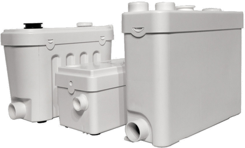Насос имеет два подсоединительных входа (основной и один дополнительный). Основной вход служит для подключения к напольному унитазу с прямым (горизонтальным) выпуском, дополнительный - для подсоединения умывальника (раковины) или писсуара. Таким образом его можно расположить прямо за унитазом.