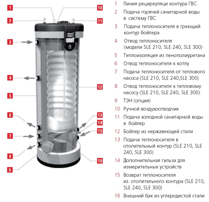 Модели водонагревателей косвенного нагрева ACV Smart Line SLE 210, 240 и 300 оснащены дополнительными патрубками подключения теплового насоса и низкотемпературного отопительного контура