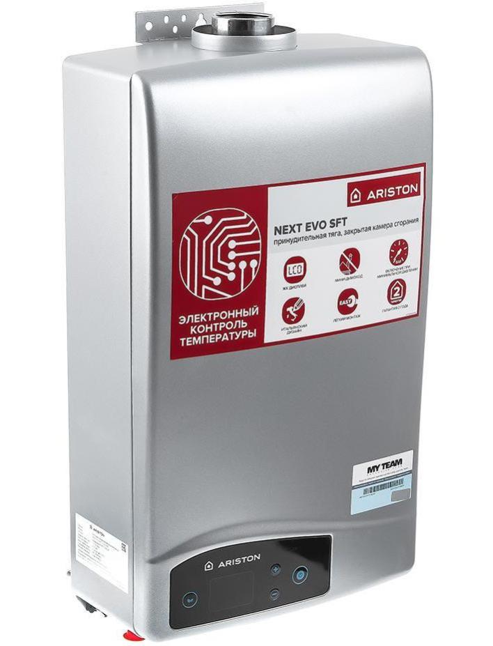 Ariston NEXT EVO SFT 11 NG EXP – это газовый проточный усовершенствованный водонагреватель с закрытой камерой сгорания, который поможет обеспечить бесперебойную поставку горячей воды с комфортными температурными показателями в вашем доме. Элегантный обновленный дизайн устройства украсит интерьер помещения, в котором был произведен монтаж, а передовое сенсорное управление позволит с максимальным удобством эксплуатировать водонагреватель.